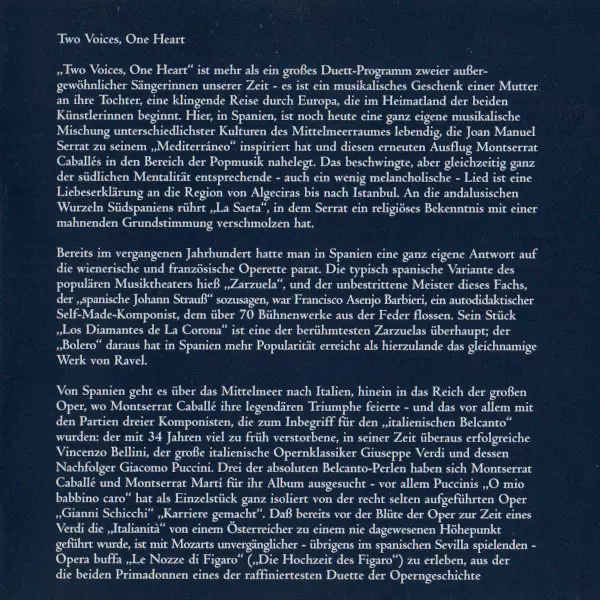 | Título | Two Voices, One Heart |