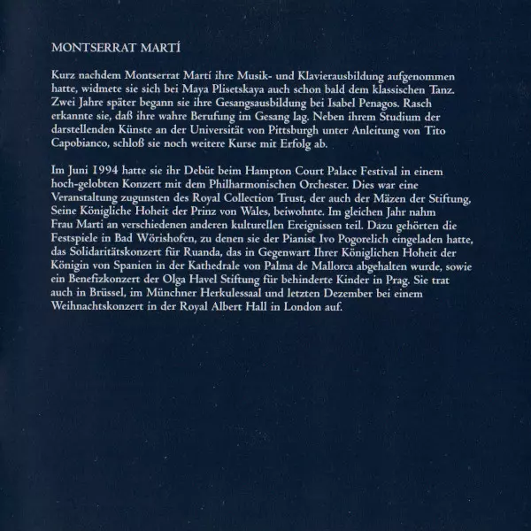 | 6 | Montserrat Marti: O Mio Babbino Caro - From Gianni Schicchi | 2:39 min | |