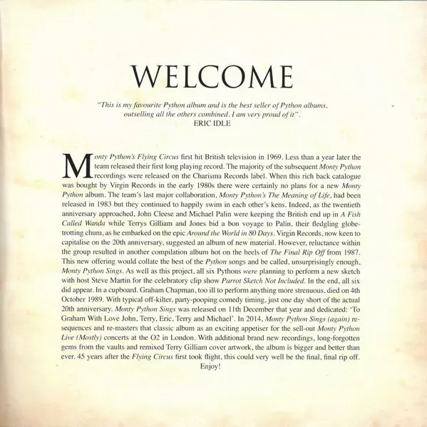 | Título | Monty Python Sings (Again) & Monty Python's Flying Circus (Live) DLX |