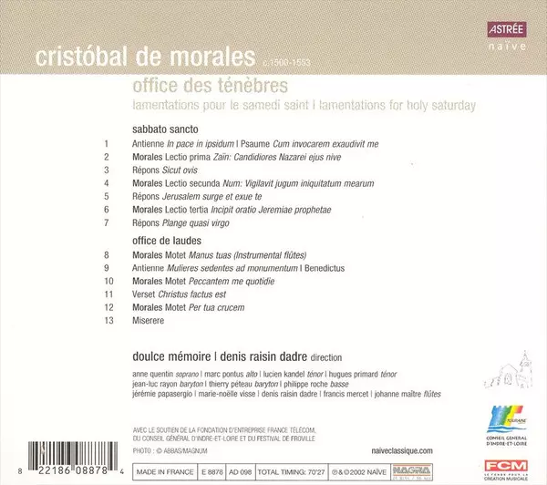 | Artista | Cristóbal de Morales | Doulce Mémoire | Denis Raisin-Dadre |