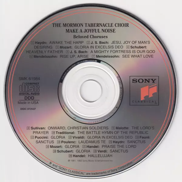 Mormon Tabernacle Choir: Make A Joyful Noise (Beloved Choruses) versión en CD en estándar edición. Esta edición en concreto se lanzó en EE.UU. en la editorial Sony Classical el día 5. diciembre 1995. Álbum abarca todos los géneros Música clásica y Choral.