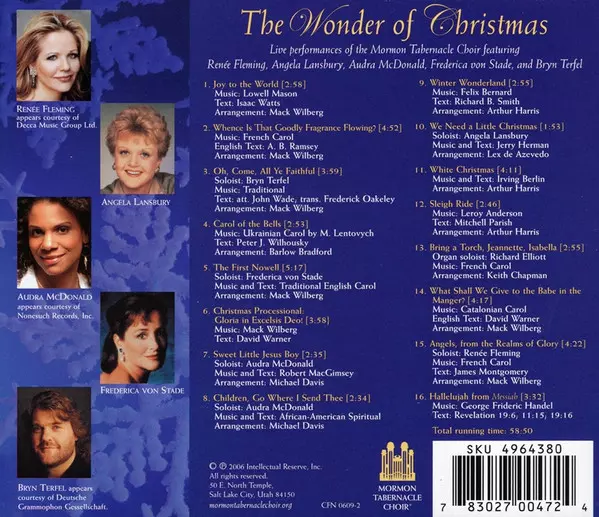 | Artista | Bryn Terfel | Renée Fleming | Frederica von Stade | Mormon Tabernacle Choir | Angela Lansbury | Audra McDonald |