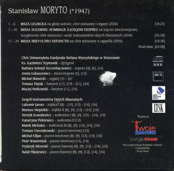 | Artista | Chór Uniwersytetu Kardynała Stefana Wyszyńskiego | Kazimierz Szymonik | Stanisław Moryto |