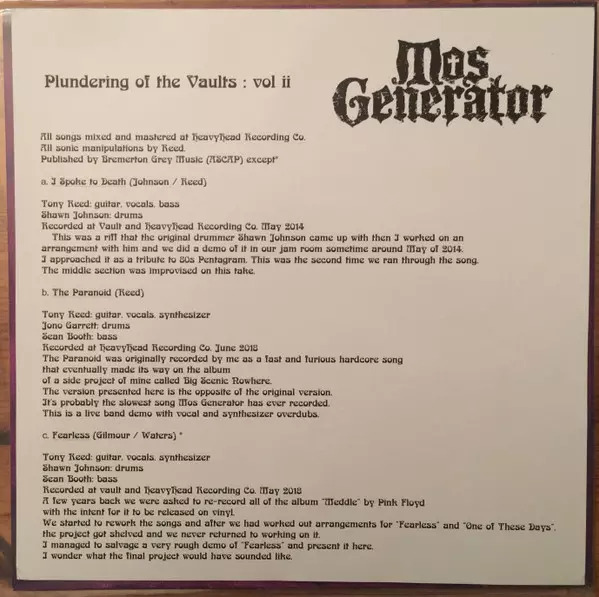 | A1 | Mos Generator: I Spoke To Death | ||