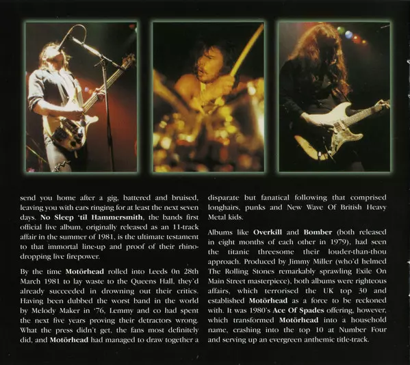 Reedice dvojitého vydání CD "No Sleep Till Hammersmith". Kromě původního alba obsahuje tato verze B-stranu singlu "Motorhead", šest nevydaných písní a jedenáct alternativních verzí. "No Sleep Till Hammersmith" (1981) je první živé album skupiny Motörhead a navazuje na úspěšné předchozí album "Ace Of Spades". Album dobře odráží intenzitu, kterou ...