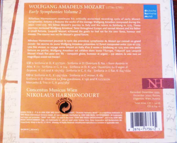 | Artista | Wolfgang Amadeus Mozart | Nikolaus Harnoncourt | Concentus Musicus Wien |