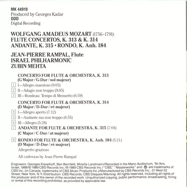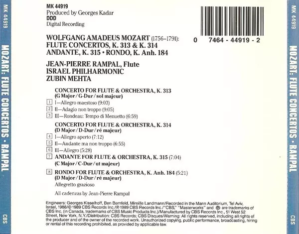 | Artista | Wolfgang Amadeus Mozart | Zubin Mehta | Israel Philharmonic Orchestra | Jean-Pierre Rampal |