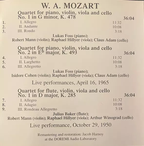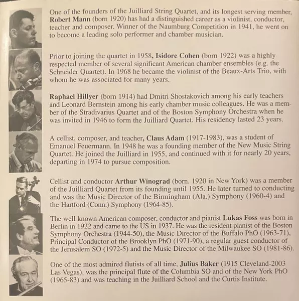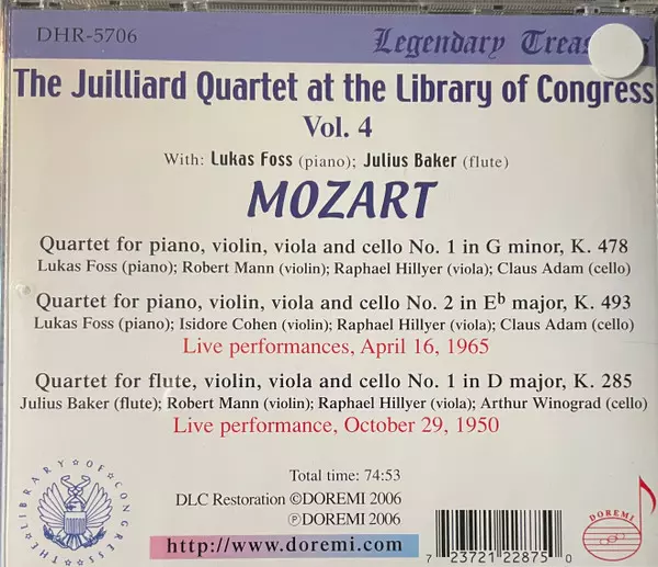 | Artista | Wolfgang Amadeus Mozart | Juilliard String Quartet | Lukas Foss | Julius Baker |