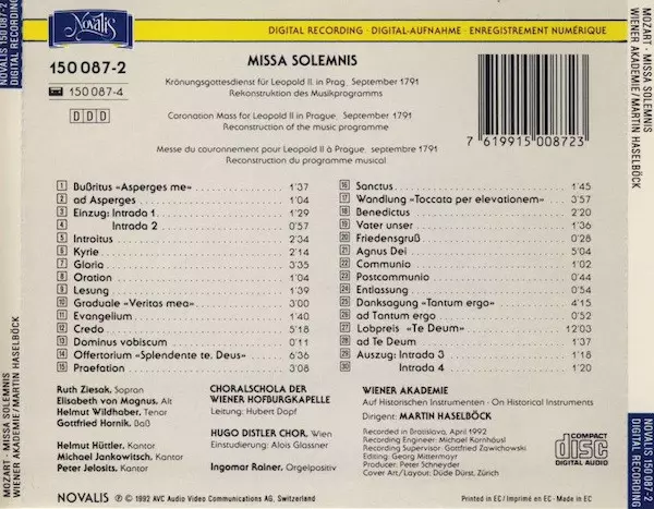 | Artista | Wolfgang Amadeus Mozart | Antonio Salieri | Martin Haselböck | Wiener Akademie |