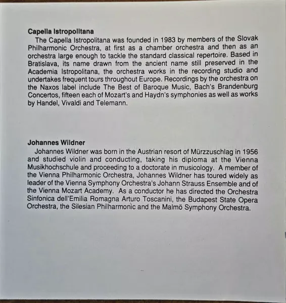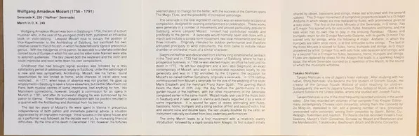 | Artista | Wolfgang Amadeus Mozart | Capella Istropolitana | Takako Nishizaki | Johannes Wildner |