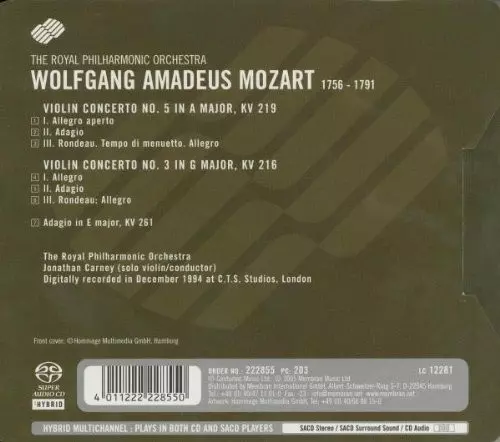 | Artista | Wolfgang Amadeus Mozart | Royal Philharmonic Orchestra | Jonathan Carney |