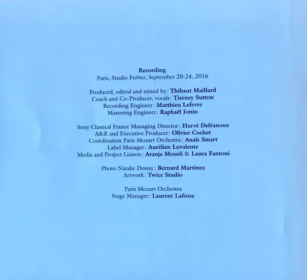 | Artista | Natalie Dessay | Paris Mozart Orchestra | Claire Gibault |