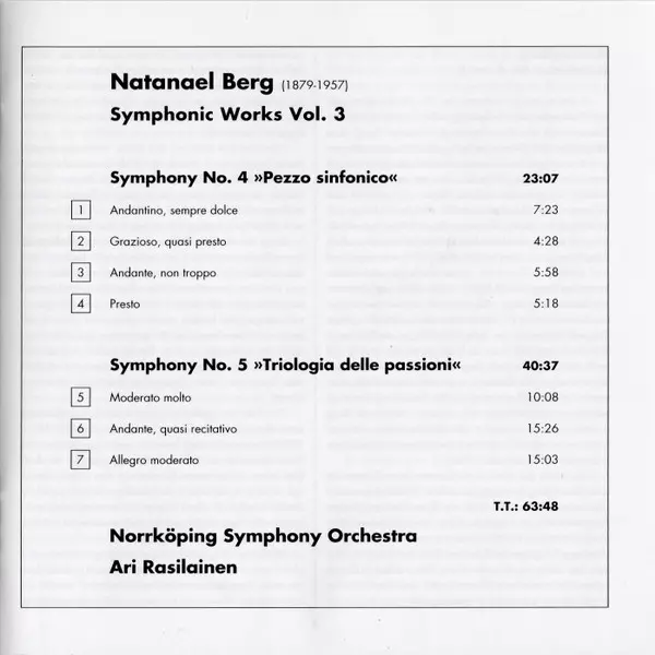 | Artista | Ari Rasilainen | Norrköping Symphony Orchestra | Natanael Berg |