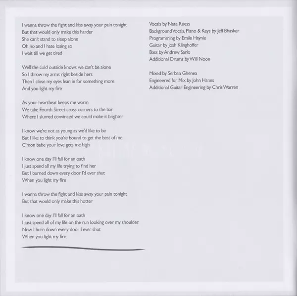Backing Vocals Jeff Bhasker | Engineer [Additional Guitar Engineering] Tom Schick | Guitar Jeff Tweedy | Mixed By Andrew Sarlo | Programmed By, Keyboards Emile Haynie | Written-By Emile Haynie, Jeff Bhasker, Nate Ruess