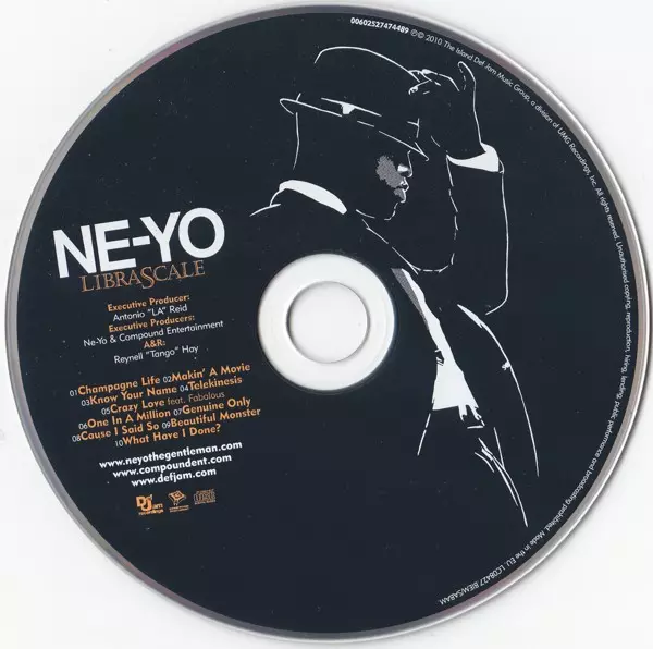 Ne-Yo: Libra Scale versión en CD en estándar edición. Esta edición en concreto se lanzó en Europa en la editorial Def Jam Recordings en colaboración con Compound Entertainment (2) el día 27. octubre 2010. Álbum abarca todos los géneros Música electrónica, Funk / Soul, House y Contemporary R&B.