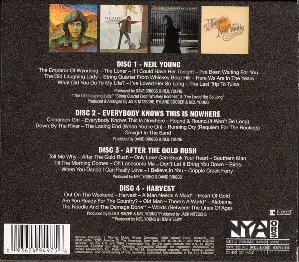 This album is a compilation of the first four albums by Neil Young , released between 1969 and 1970. The album has been newly remastered and includes bonus tracks not originally released on the albums. The bonus tracks are a combination of live and studio recordings and provide a good overview of the early years of Neil Young's career. The quali...
