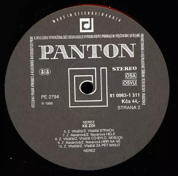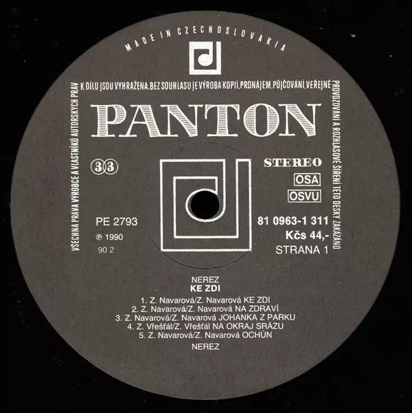 Nerez: Ke Zdi versión en vinilo LP en estándar edición. Esta edición en concreto se lanzó en Checoslovaquia en la editorial Panton del año 1990. Álbum abarca todos los géneros Rock, Folk, World, & Country y Clásicos checoslovacos.