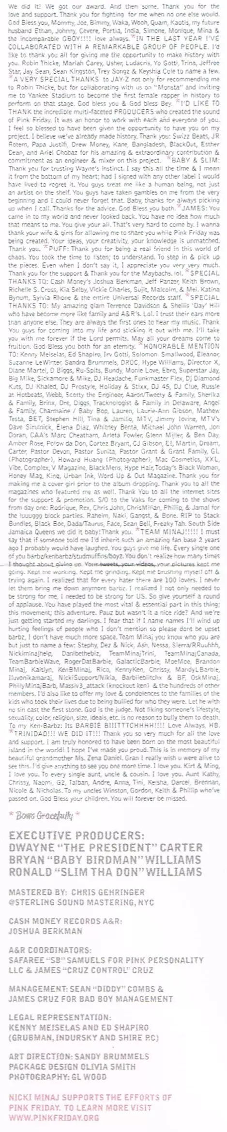 Nicki Minaj: Pink Friday versión en CD en estándar edición. Esta edición en concreto se lanzó en Reino Unido en la editorial Cash Money Records en colaboración con Universal Motown y Young Money Entertainment el día 14. marzo 2023. Álbum abarca todos los géneros Hip Hop y RnB/Swing.