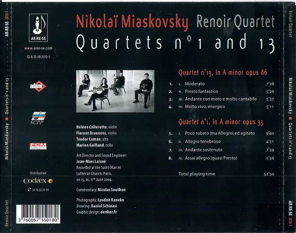 | Artista | Nikolai Myaskovsky | Renoir Quartet |
