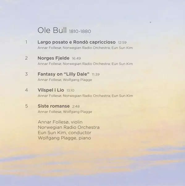 | Artista | Kringkastingsorkestret | Ole Bull | Eun Sun Kim | Annar Follesø | Wolfgang Plagge |