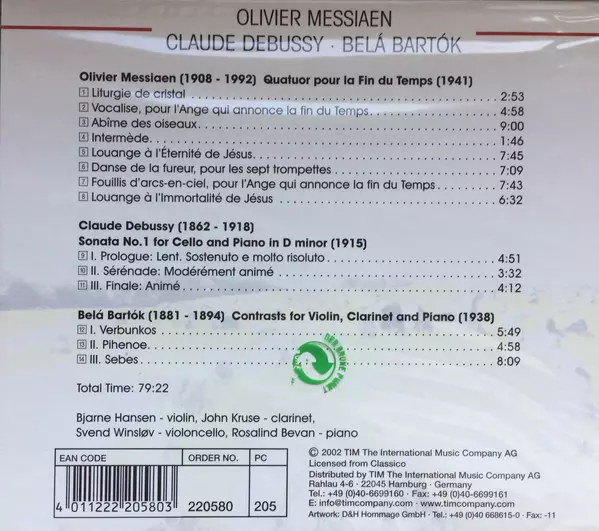 CD Claude Debussy: Quatuor Pour La Fin Du Temps, A.M.O.