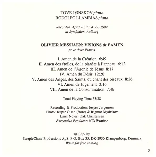 | Artista | Olivier Messiaen | Tove Lønskov | Rodolfo Llambias |