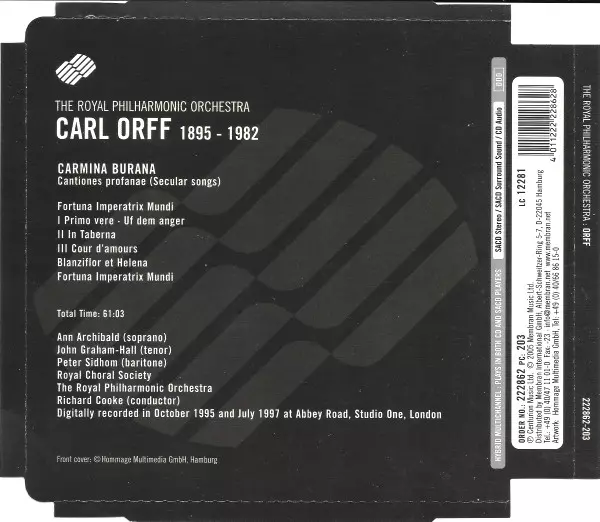 | Carmina Burana - Cantiones Profanae (Secular Songs) | ||