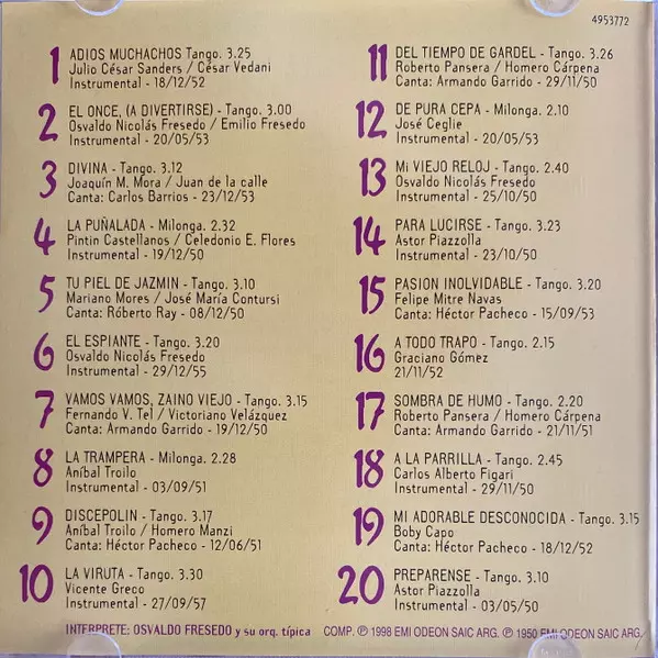 | Artista | Osvaldo Fresedo Y Su Orquesta Típica |