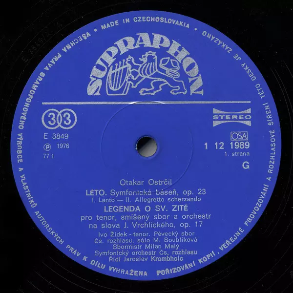| Artista | Prague Radio Symphony Orchestra | Otakar Ostrčil | Jaroslav Krombholc |