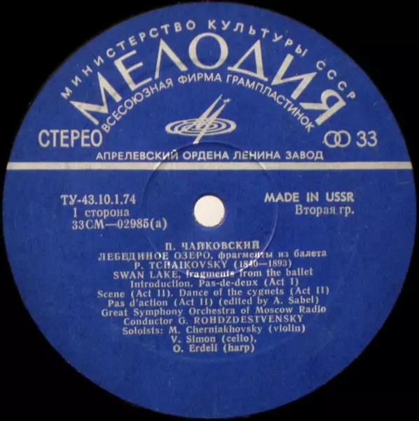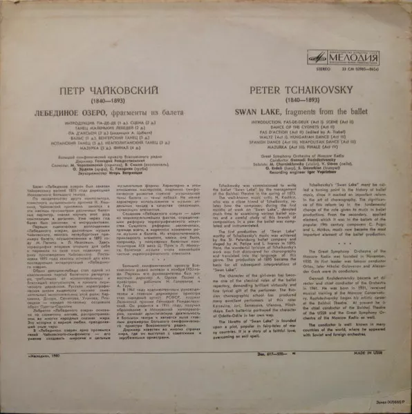 | Artista | Pyotr Ilyich Tchaikovsky | Gennadi Rozhdestvensky | Большой Симфонический Оркестр Всесоюзного Радио |