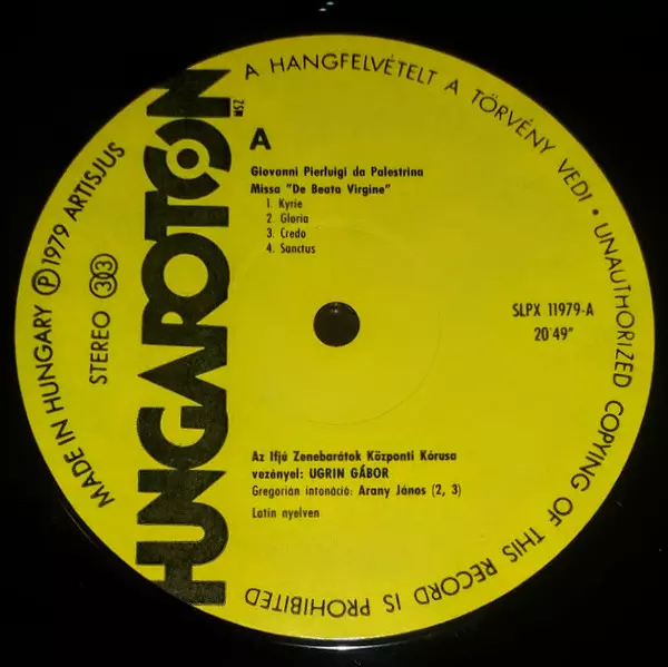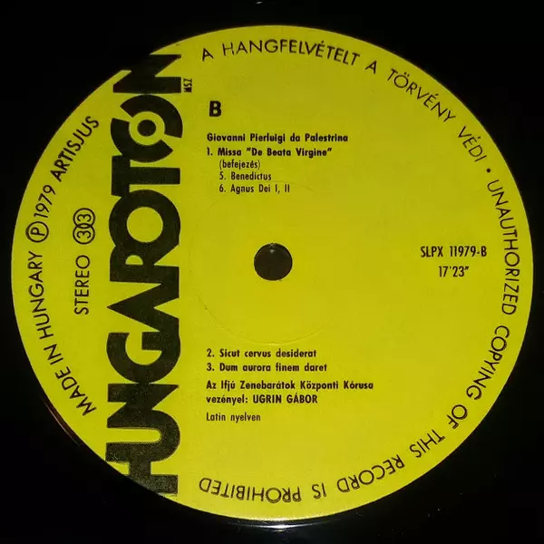 | Artista | Giovanni Pierluigi da Palestrina | Ugrin Gábor | Chorus Jeunesses Musicales |