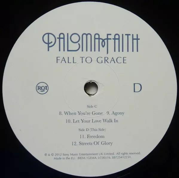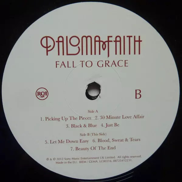Paloma Faith: Fall To Grace versión en vinilo 2LP en estándar edición. Esta edición en concreto se lanzó en Reino Unido en la editorial RCA en colaboración con Sony Music el día 26. febrero 2013. Álbum puede clasificarse como género Pop.