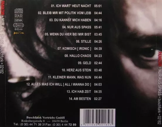 Pankow: Nur Aus Spass versión en CD en estándar edición. Esta edición en concreto se lanzó en Alemania en la editorial BuschFunk el día 26. mayo 2006. Álbum puede clasificarse como género Rock.