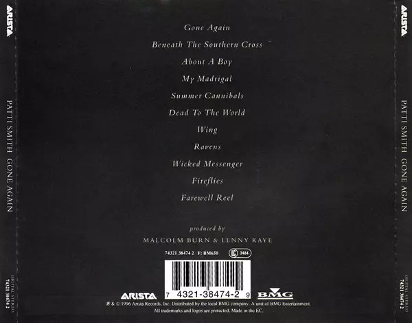 The album Gone Again, released in 1996, is the sixth studio album by Patti Smith . The album was recorded after the death of her husband Fred "Sonic" Smith. The album is a blend of rock, folk and blues and has been praised by critics for its raw and emotional lyrics.
