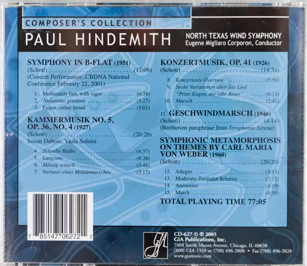 Artista | Paul Hindemith | Eugene Corporon | North Texas Wind Symphony |