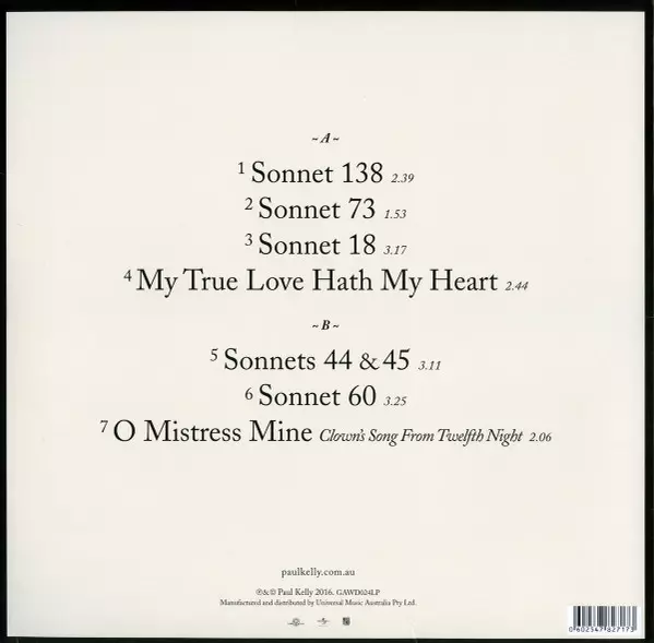 | Artista | Paul Kelly |