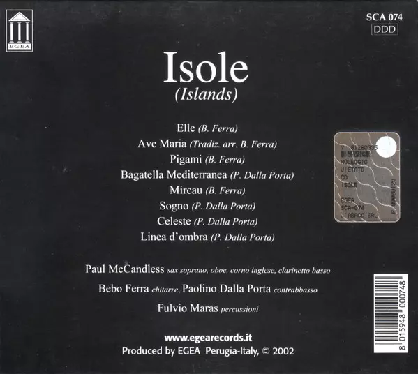 | Artista | Paul McCandless | Bebo Ferra | Paolino Dalla Porta | Fulvio Maras |