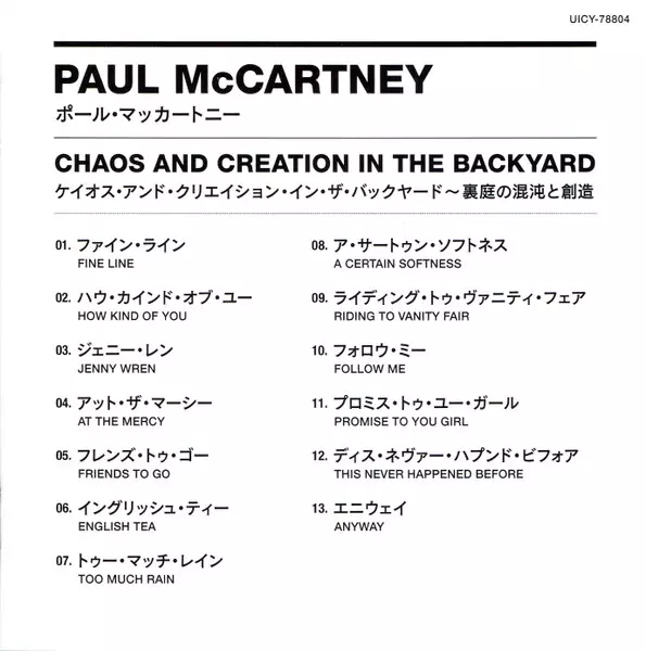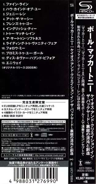Paul McCartney: Chaos And Creation In The Backyard LTD versión en CD en de edición limitada edición. Esta edición en concreto se lanzó en Japón en la editorial Capitol Records en colaboración con MPL (2) el día 18. mayo 2018.