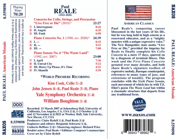 | Artista | William Boughton | Paul Reale | John Jensen | Kim Cook | Yale Symphony Orchestra |