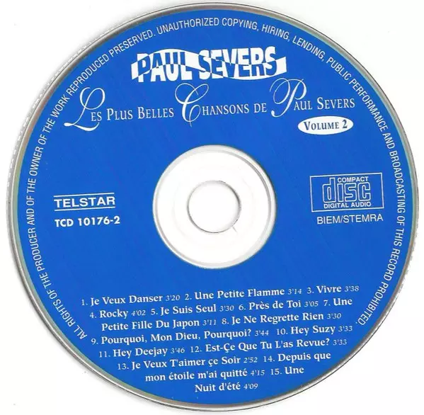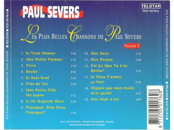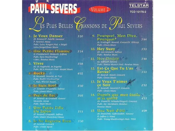 Paul Severs: Les Plus Belles Chansons De Paul Severs Volume 2 versión en CD en estándar edición. Esta edición en concreto se lanzó en Países Bajos en la editorial Telstar (2) el día 19. abril 2019. Álbum abarca todos los géneros Rock, Pop, Balad, Schlager y New Wave.