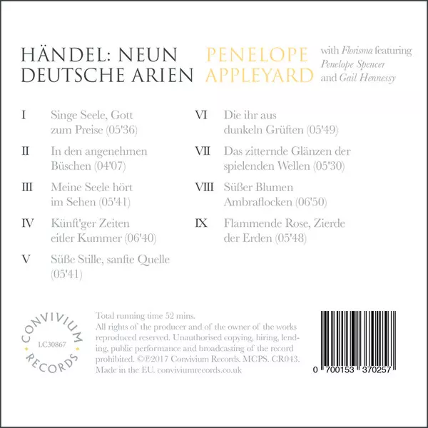 | Artista | Georg Friedrich Händel | Penelope Appleyard |