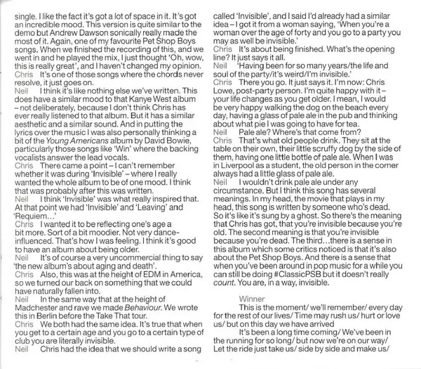 Engineer [Mix] Pete Gleadall | Remix, Producer [Additional] Pet Shop Boys