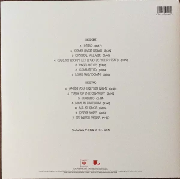 Drums, Acoustic Guitar, Electric Guitar, Bass, Voice Pete Yorn | Electric Guitar R. Walt Vincent | Electric Guitar, Producer [Additional Production] Brad Wood | Mixed By Andy Wallace