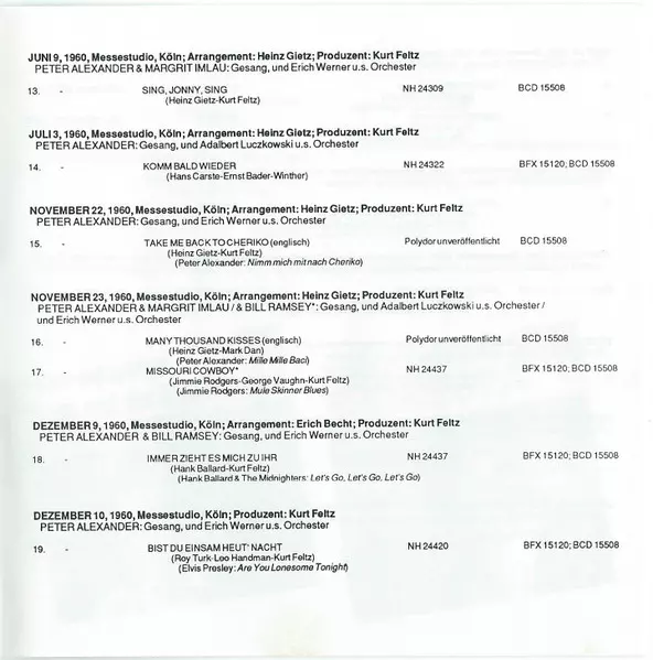 | 21 | Peter Alexander, Bill Ramsey: Immer Zieht Es Mich Zu Ihr | 2:42 min | |