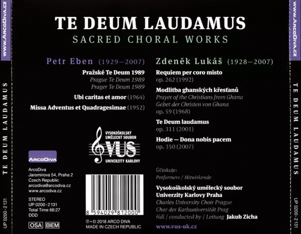 | Artista | Petr Eben | Zdeněk Lukáš | Vysokoškolský umělecký sbor Univerzity Karlovy | Charles University Choir Prague | Jakub Zicha |