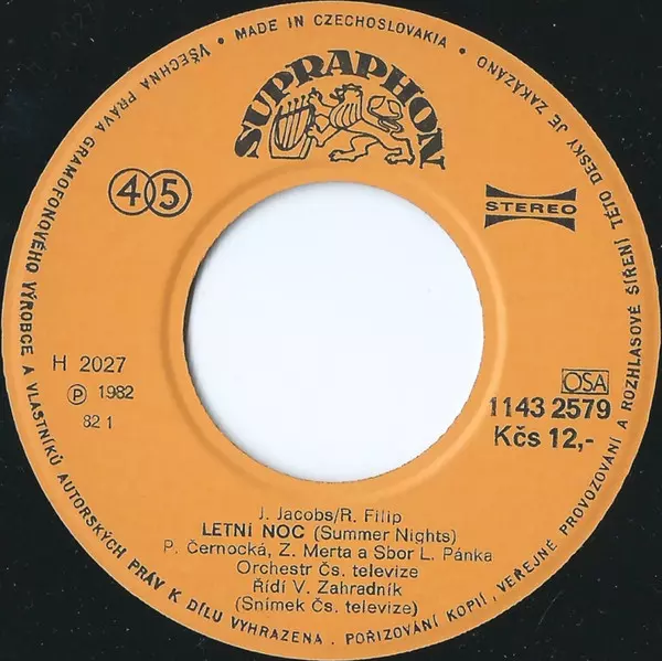 | Conductor Václav Zahradník | Lyrics By Robert Filip | Orchestra Orchestr Československé Televize | Written-By Jim Jacobs (2) | |||