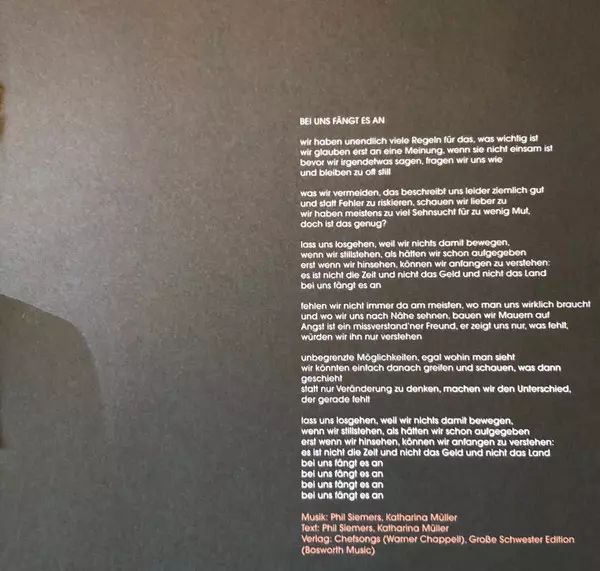 Lyrics By Max Leßmann | Music By Lars Ehrhardt, Sven Bünger | Music By, Lyrics By Phil Siemers | Strings Anne de Wolff