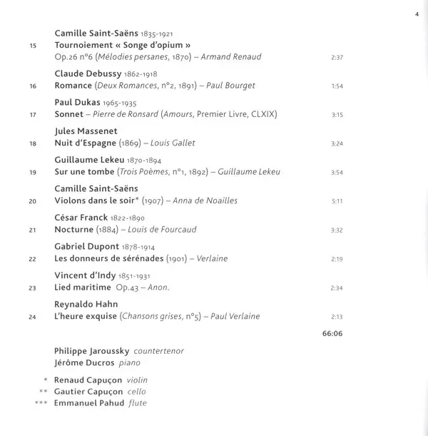 | Artista | Philippe Jaroussky | Jérôme Ducros |