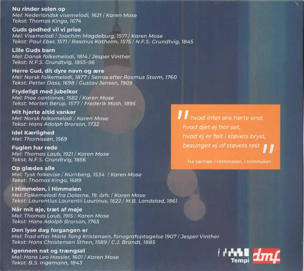 Lyrics By [1571] Paul Eber | Lyrics By [1575] Rasmus Katholm | Lyrics By [1845] Nikolaj Frederik Severin Grundtvig | Music By Karen Mose | Written By [Mel.] Visemelodi / Joachim Magdeburg, 1571