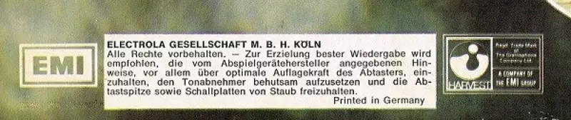 | Editorial | Harvest | EMI |